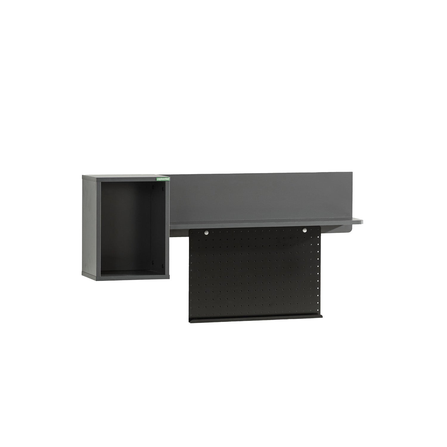 • Lochblechtafel mit Miniregal kann als Notizwand verwendet werden